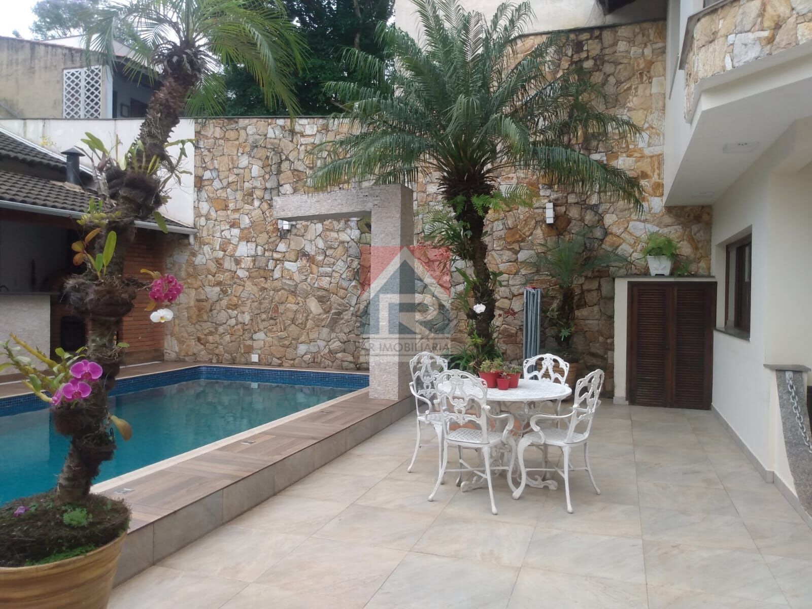 Excelente Sobrado com 495 m² bem distribuídos, na parte superior conta com 4 dormitórios, sendo 3 suítes, uma com closet e sacada com vista para piscina, uma sala aconchegante e 1 escritório, na parte inferior conta com uma sala magnifica para dois ambientes com pé direito alto, sala de jantar, cozinha toda planejada com uma despensa, copa e um belíssimo jardim de inverno, 1 lavabo, área de serviço, esse imóvel possuí também uma maravilhosa área de lazer com piscina com aquecimento solar, sauna, salão de festas e jogos, churrasqueira, forno de pizza e fogão à lenha, dois banheiros próximo a piscina, todas as torneiras e chuveiros com aquecimento solar. garagem para 8 a 10 carros.